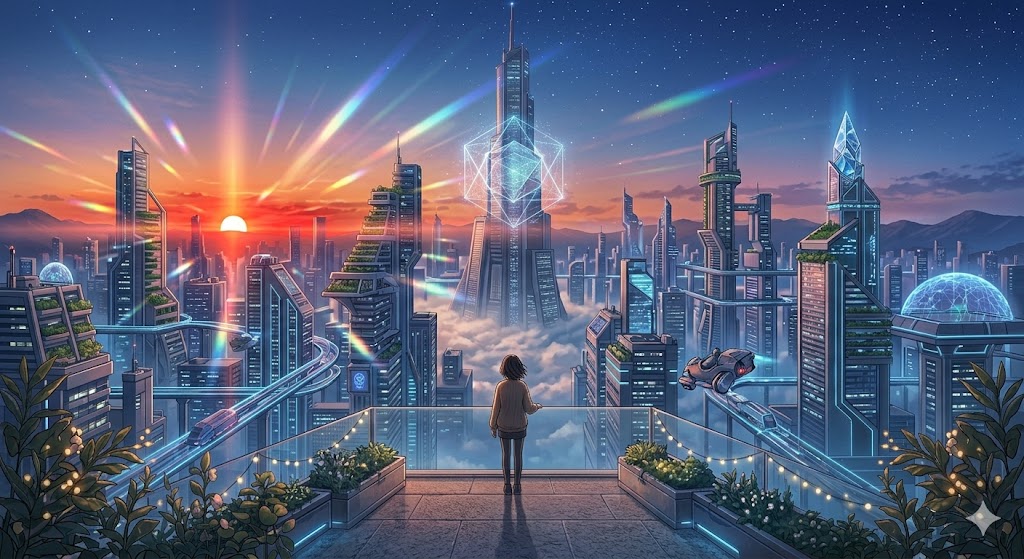 想让banana帮我创作一个新海诚风格的图片,我今天建好了自己的网站,取名浮光录,记录拾取生活中的点滴浮光,算是一张开始的图片,浮光照进的我的赛博世界